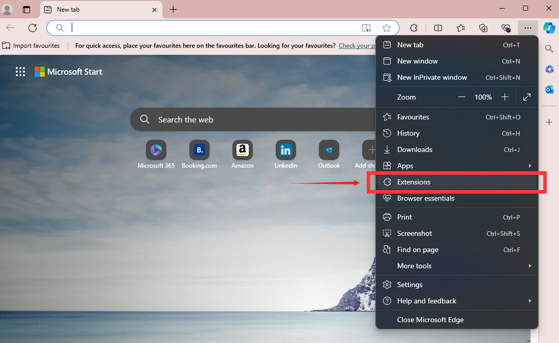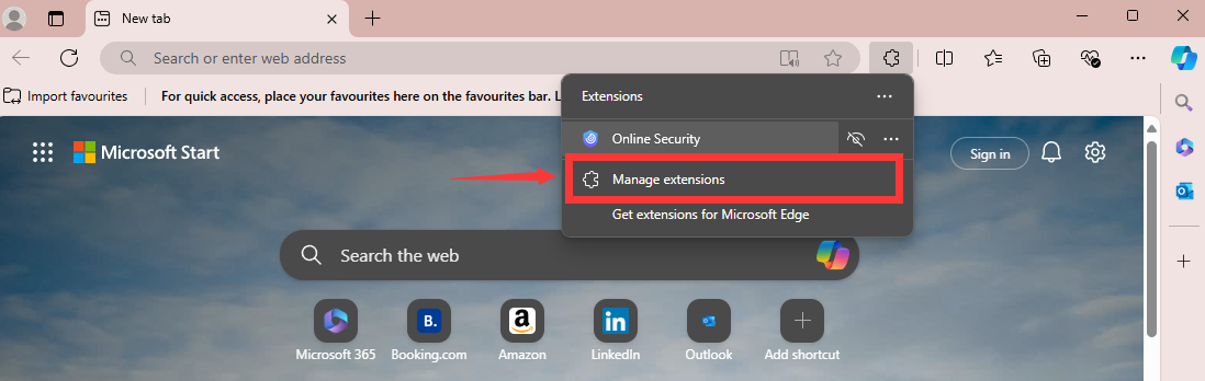 Step 1: Open Edge Extensions Settings